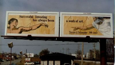 Double billboards borrowed from DaVinci make some fine art & advertising; Champain-Urbana, IL