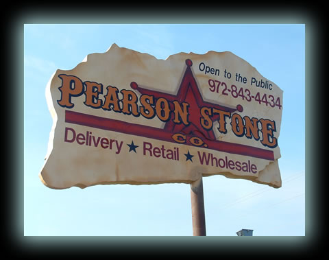 A heavy metal sign, but painted to look like a 18 ft. slab of stone.